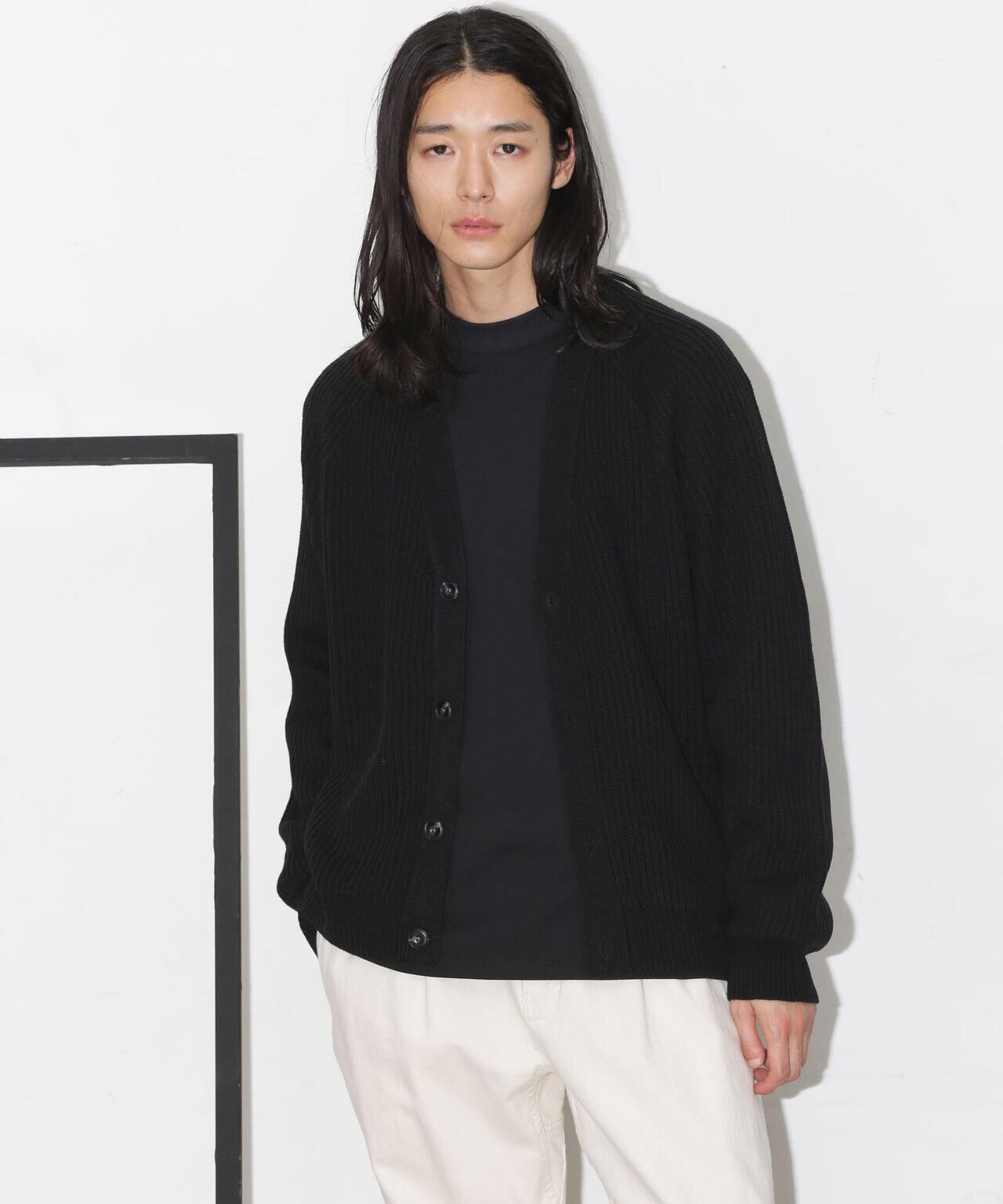 ・スタンダードな畦編み仕様のカーディガン
