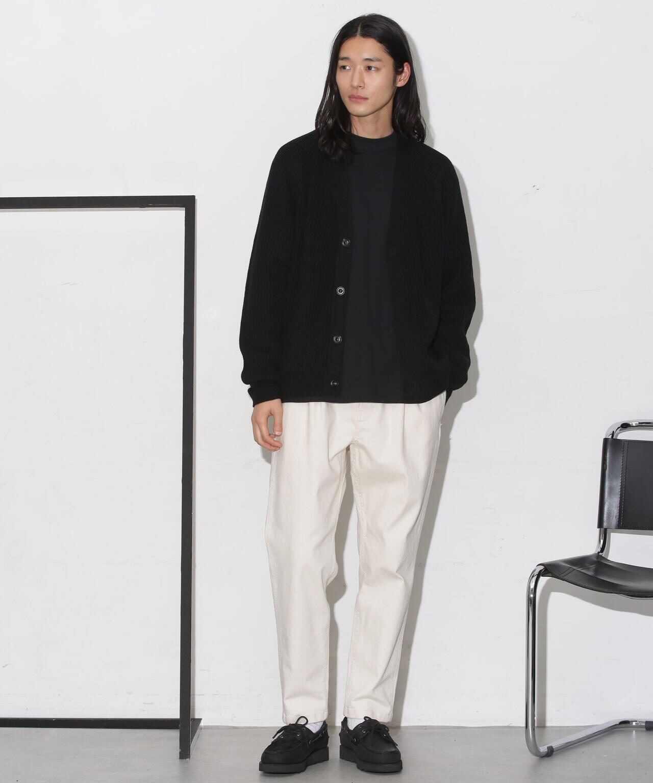 首元がVネックなのでクルーやタートルタイプのカットソーと好相性◎