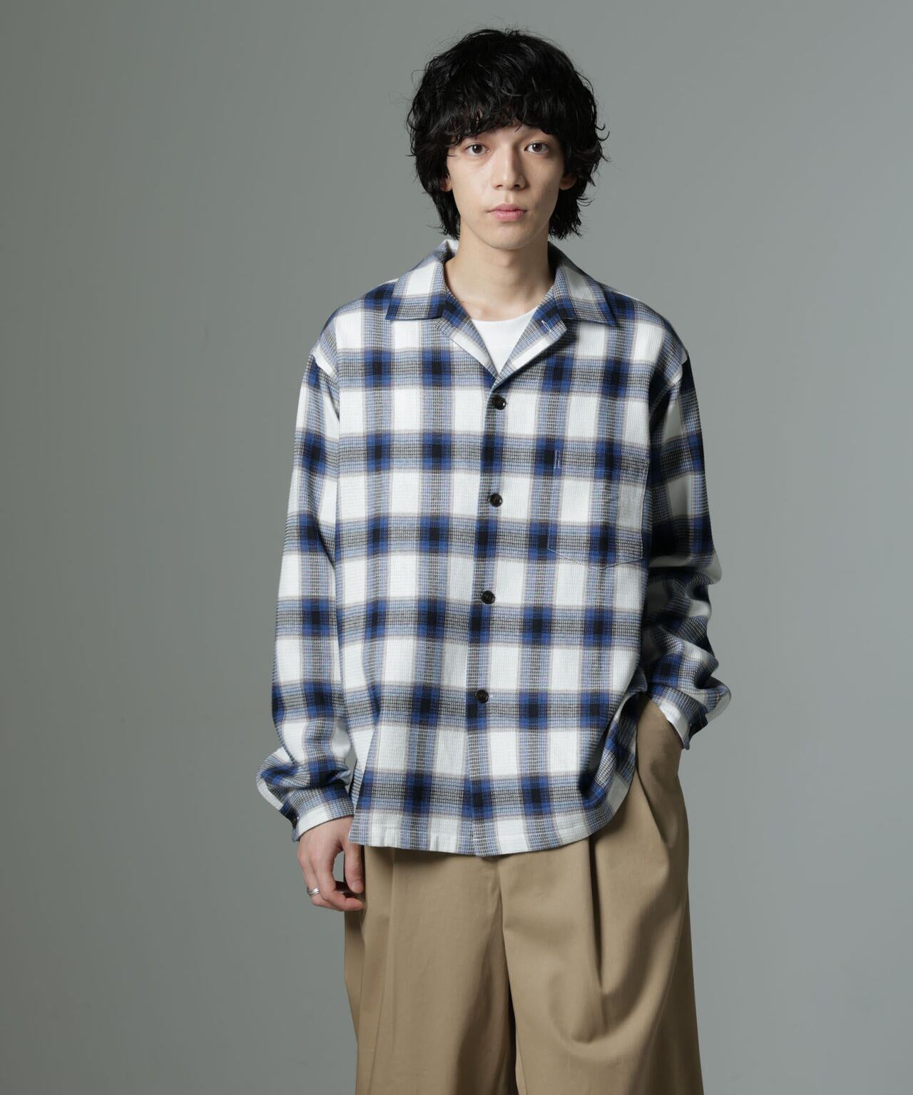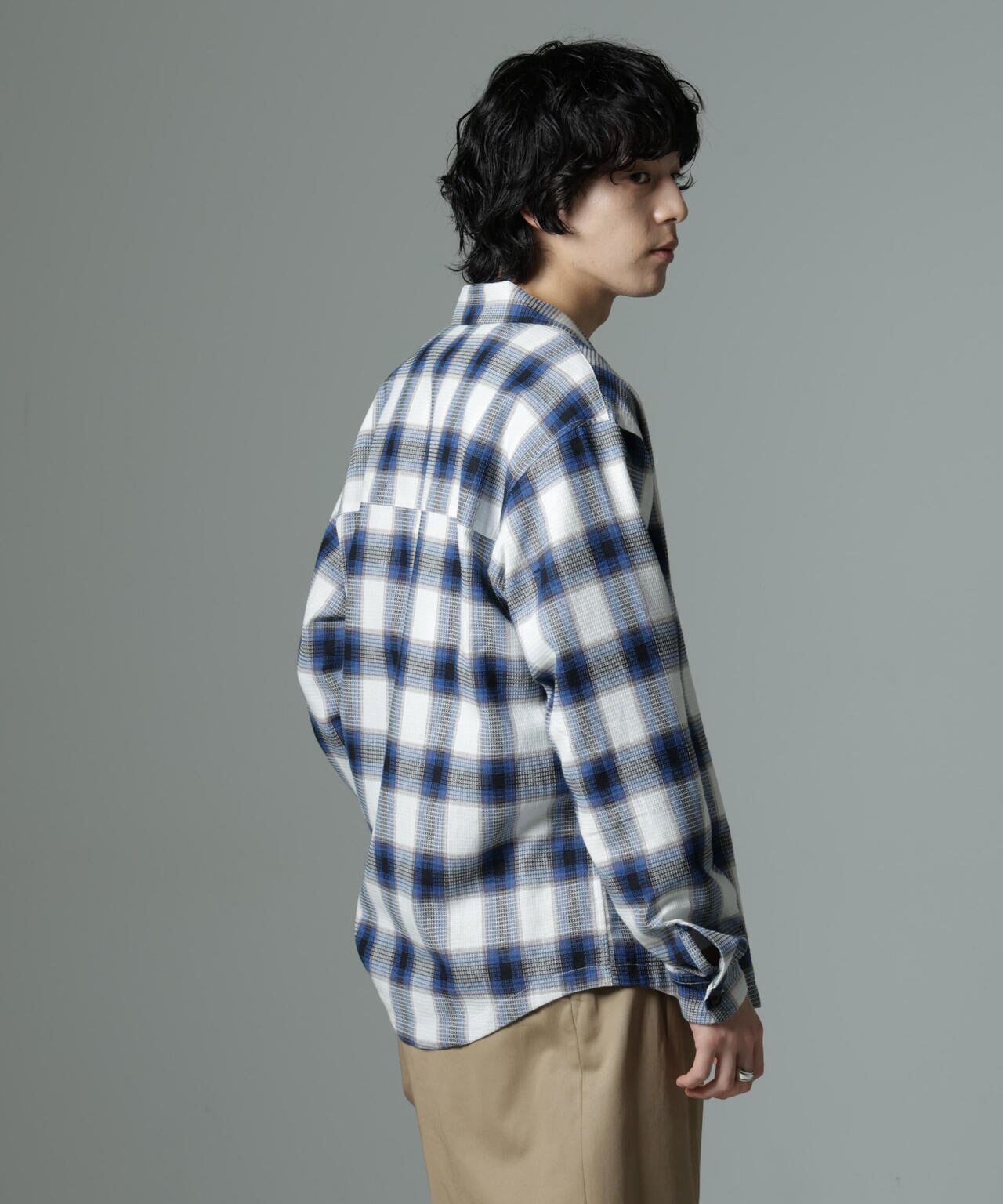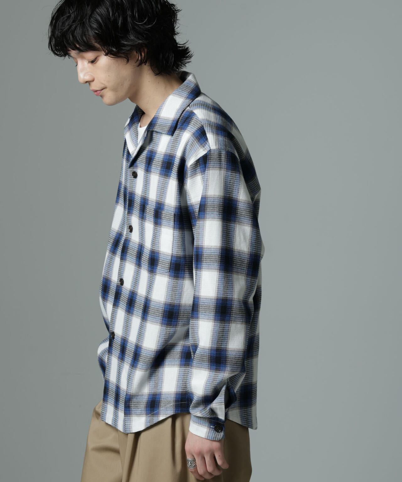 コットンワッフル素材を採用したチェックシャツ。タオル生地にも使用される素材がトップスとしての着心地の良さを実現し、1枚で活躍する季節からアウターのインナーで活躍する季節まで幅広く着用いただけるおすすめのアイテムです。