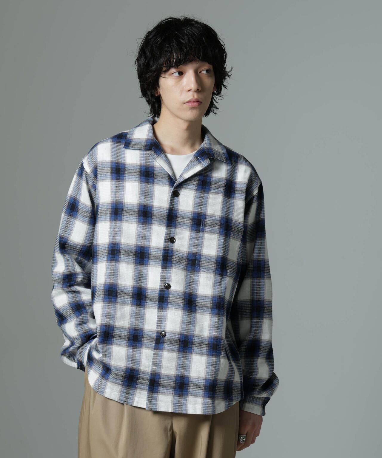 チェックワッフルシャツ
