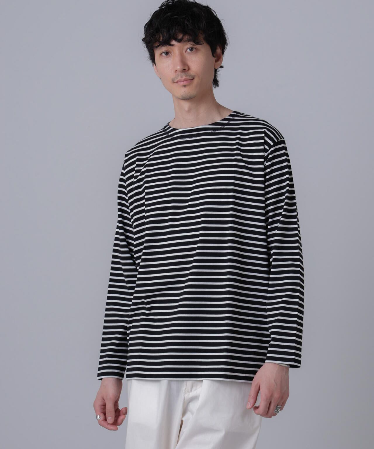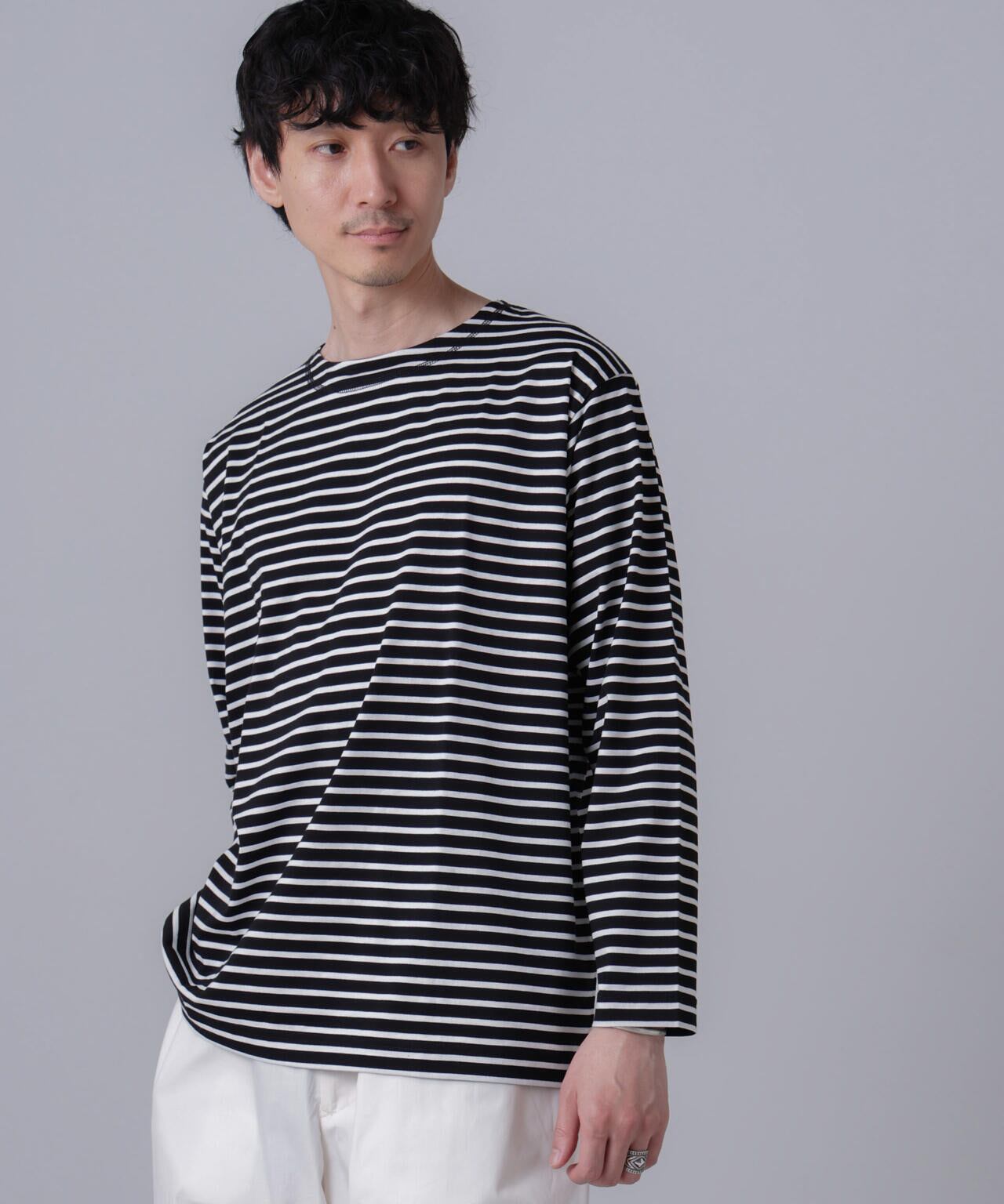 一枚使いもサマになるボーダー柄はデイリーユースにピッタリ。
