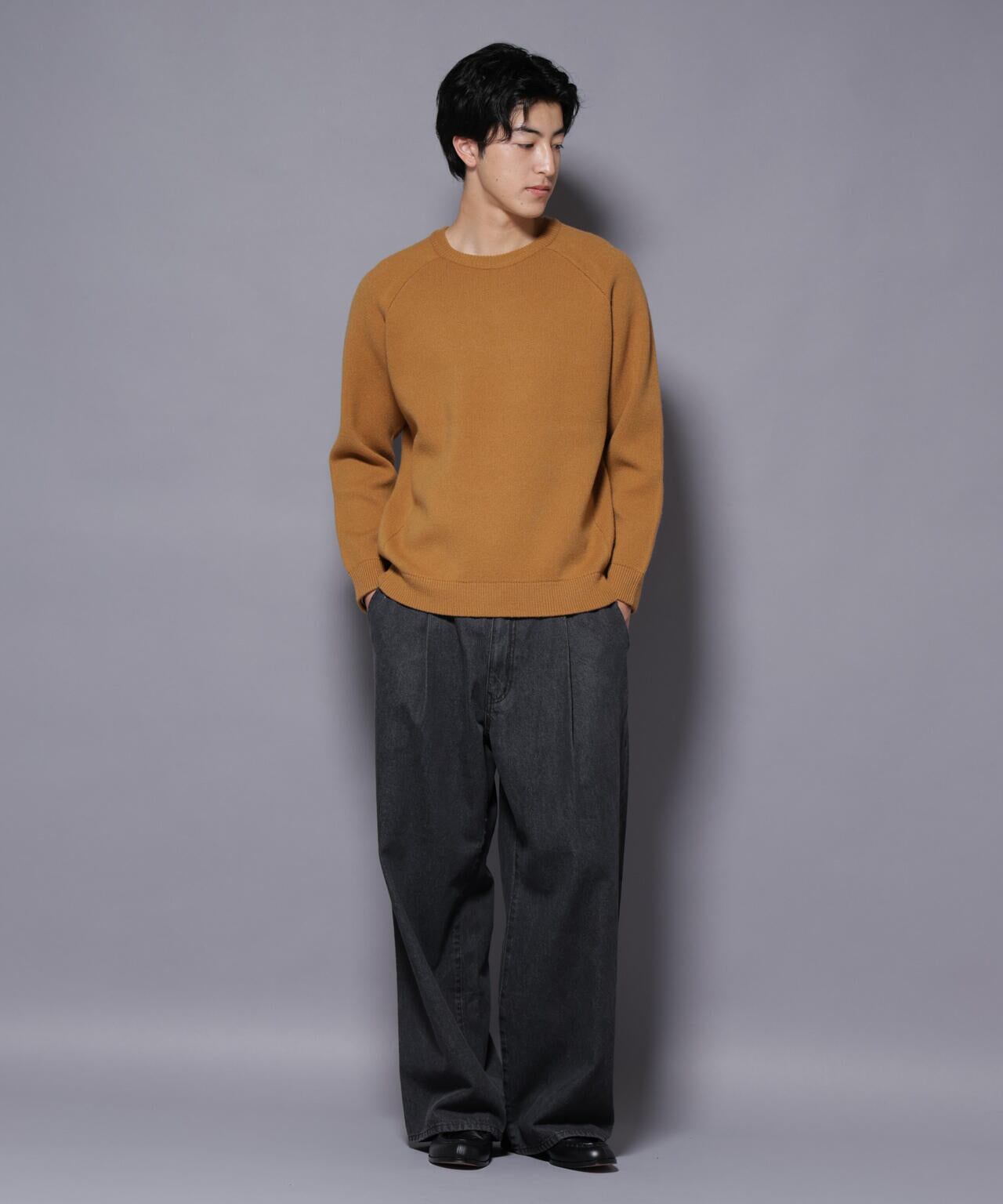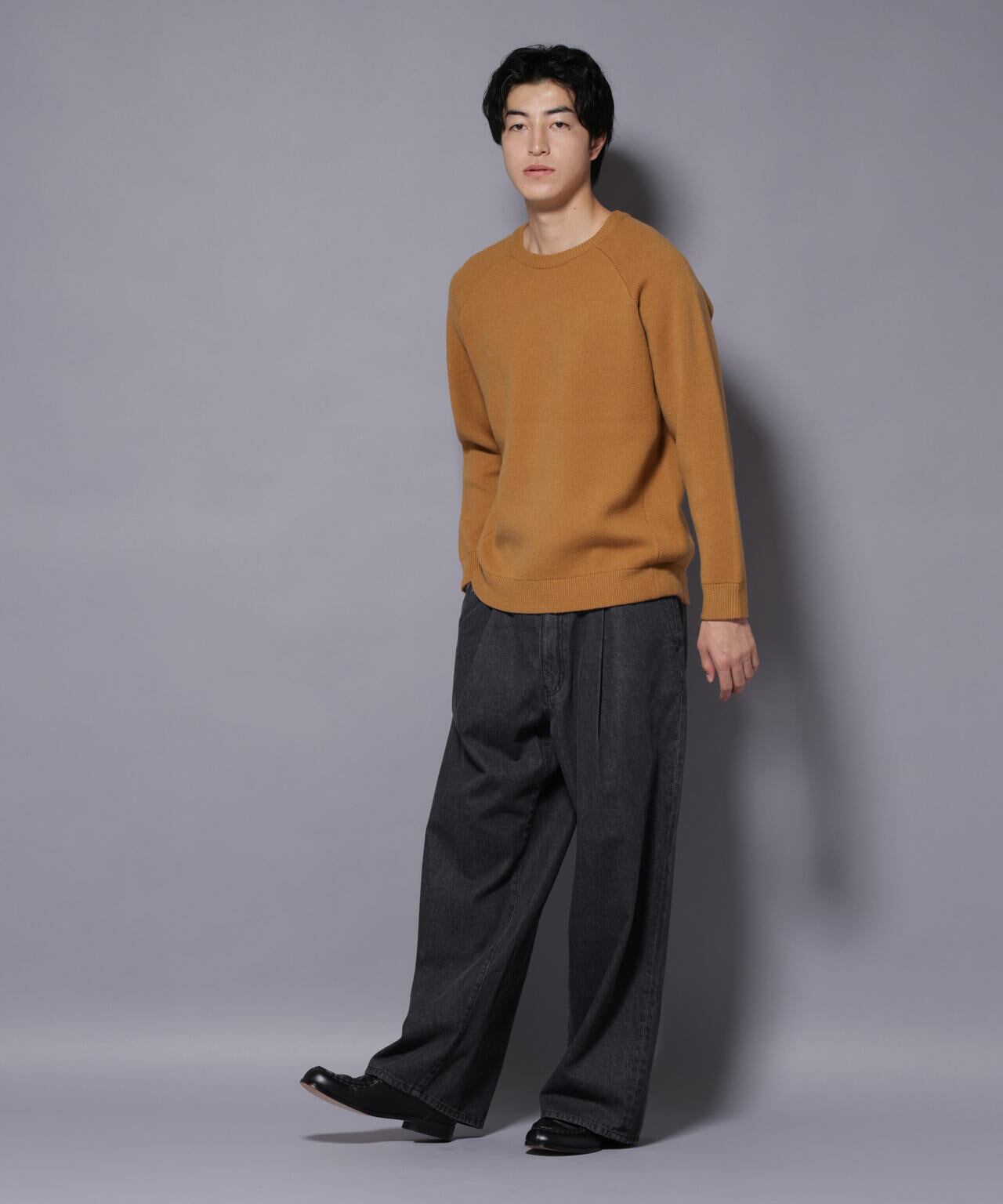 伸縮性に優れ、縮や型崩れがおきにくいPBTのポリエステル糸を使用したクルーネックニット。スウェット感覚で着用できる、汎用性の高い一枚です。