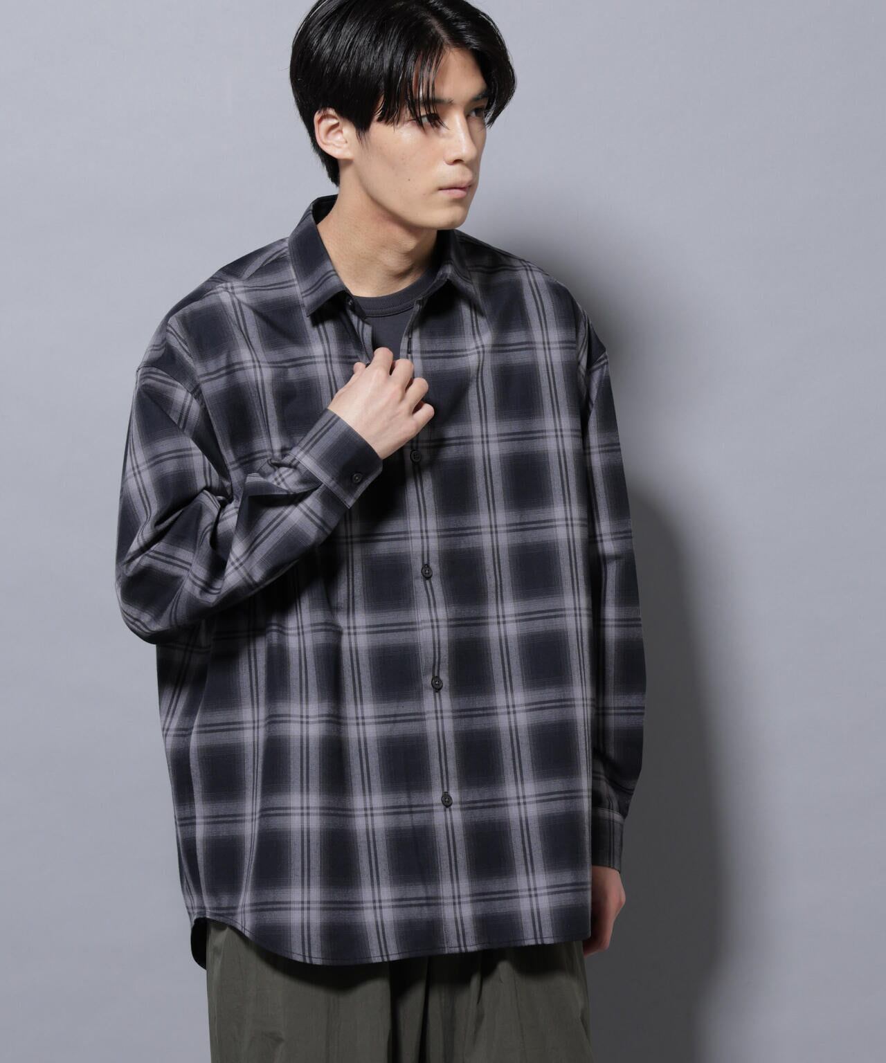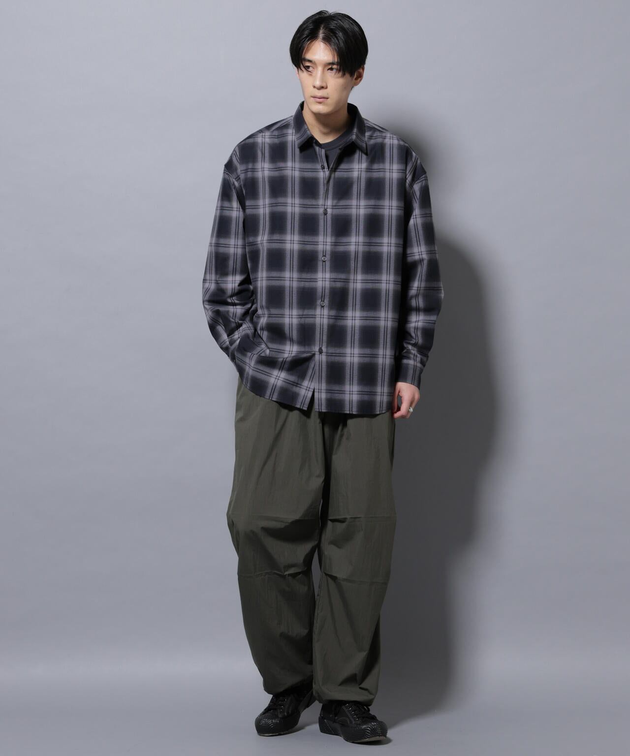 オリジナルのチェック柄を採用したビッグシルエットシャツ。肩のラインが落ちるようなドロップデザインのシャツは、インナー使いとしてレイヤードスタイルにおすすめ◎今年らしい着こなしを楽しめる1枚です。