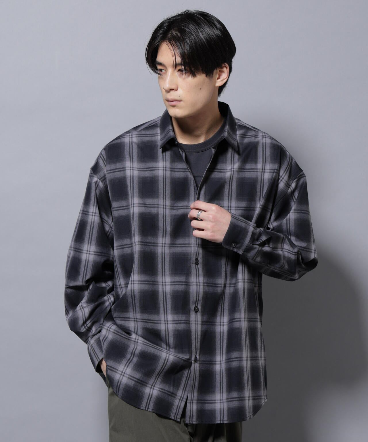 ビッグドレープチェックシャツ 長袖