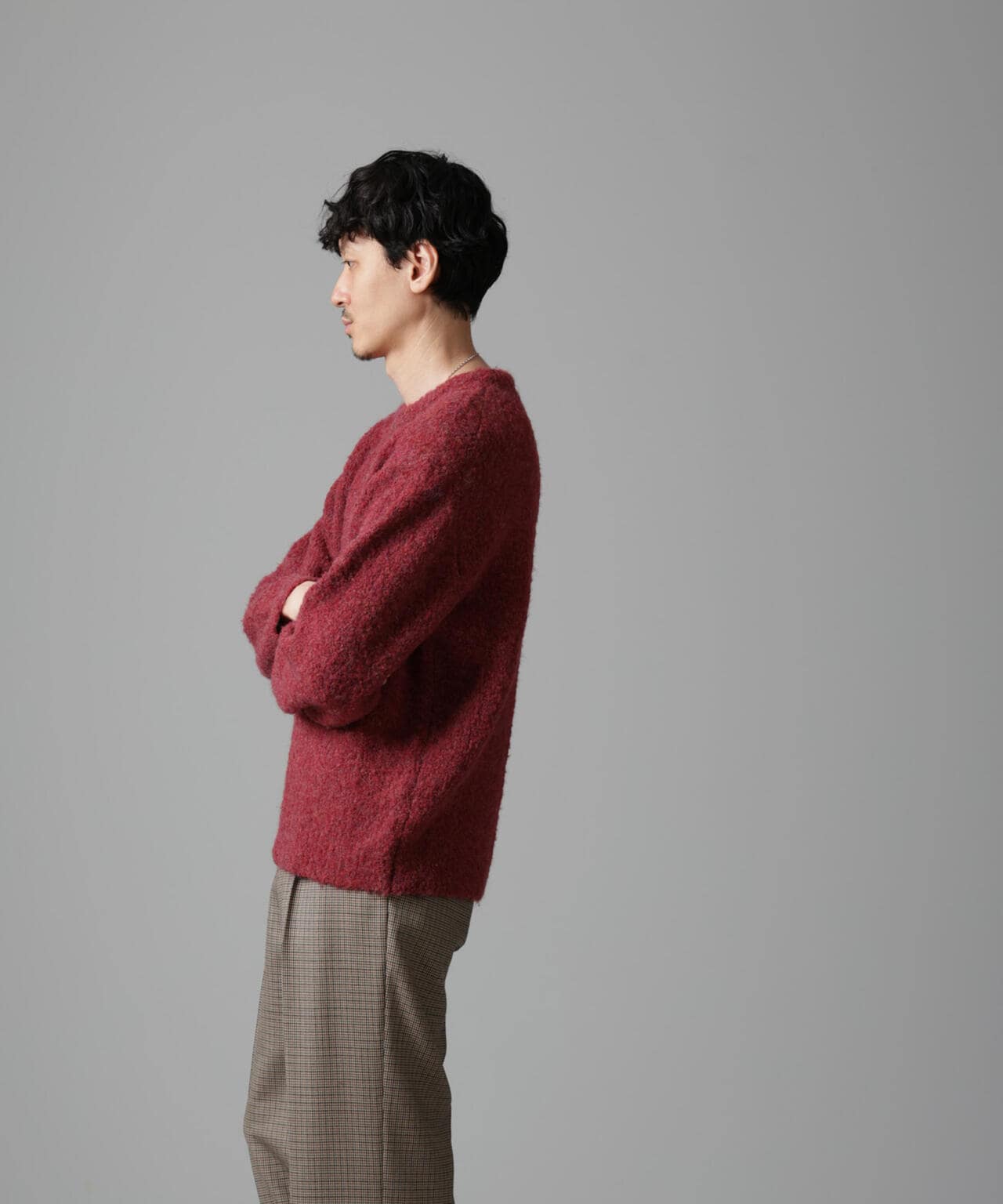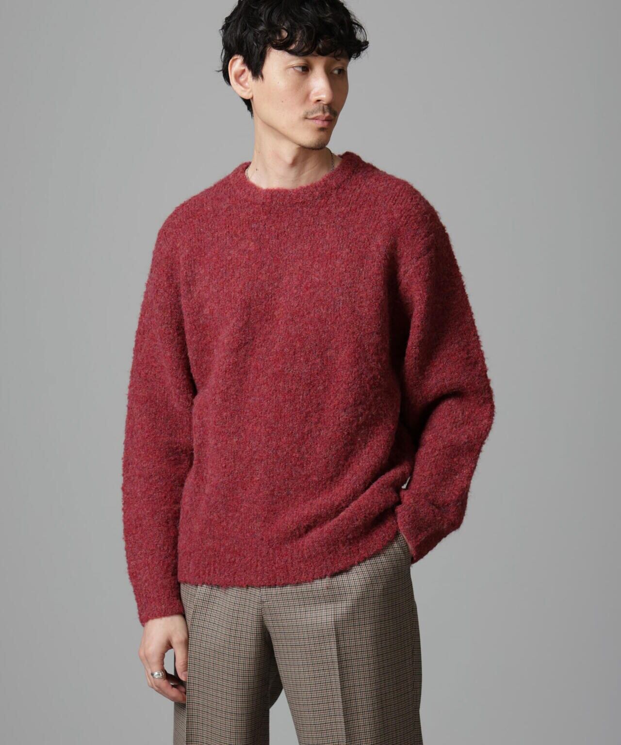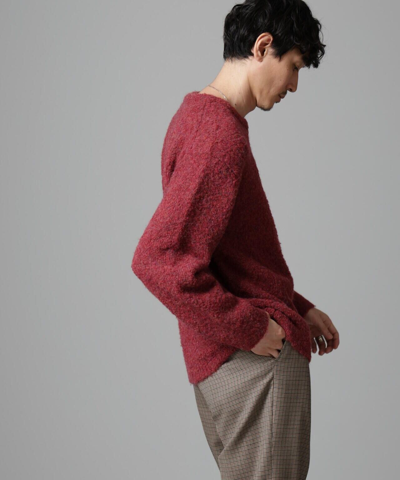 4素材の糸をバランスよくブレンドし、独特なブークレ感が特徴のニット。程よい厚さがウォーム感を演出する、室内着としても活躍する1着です。
